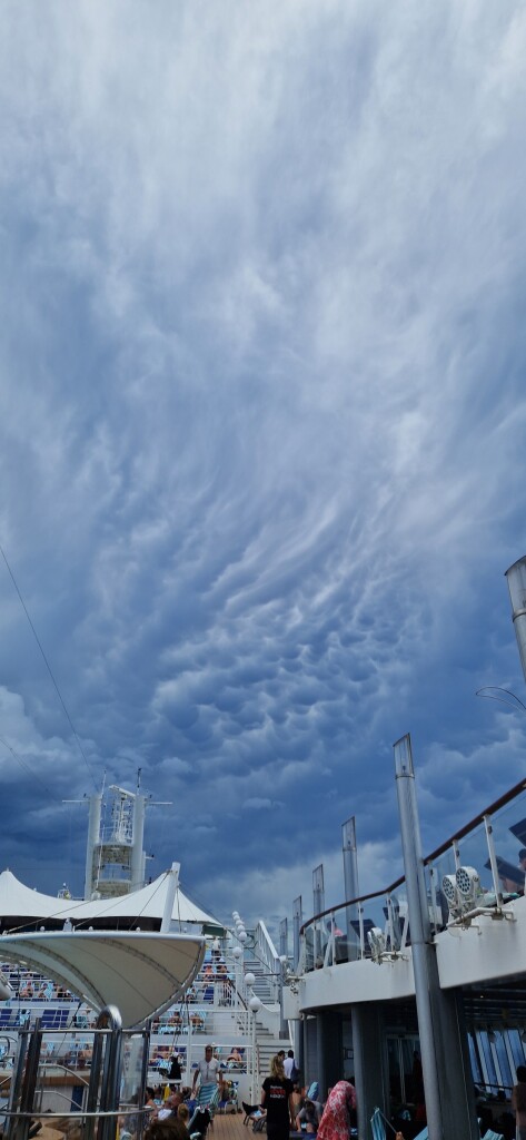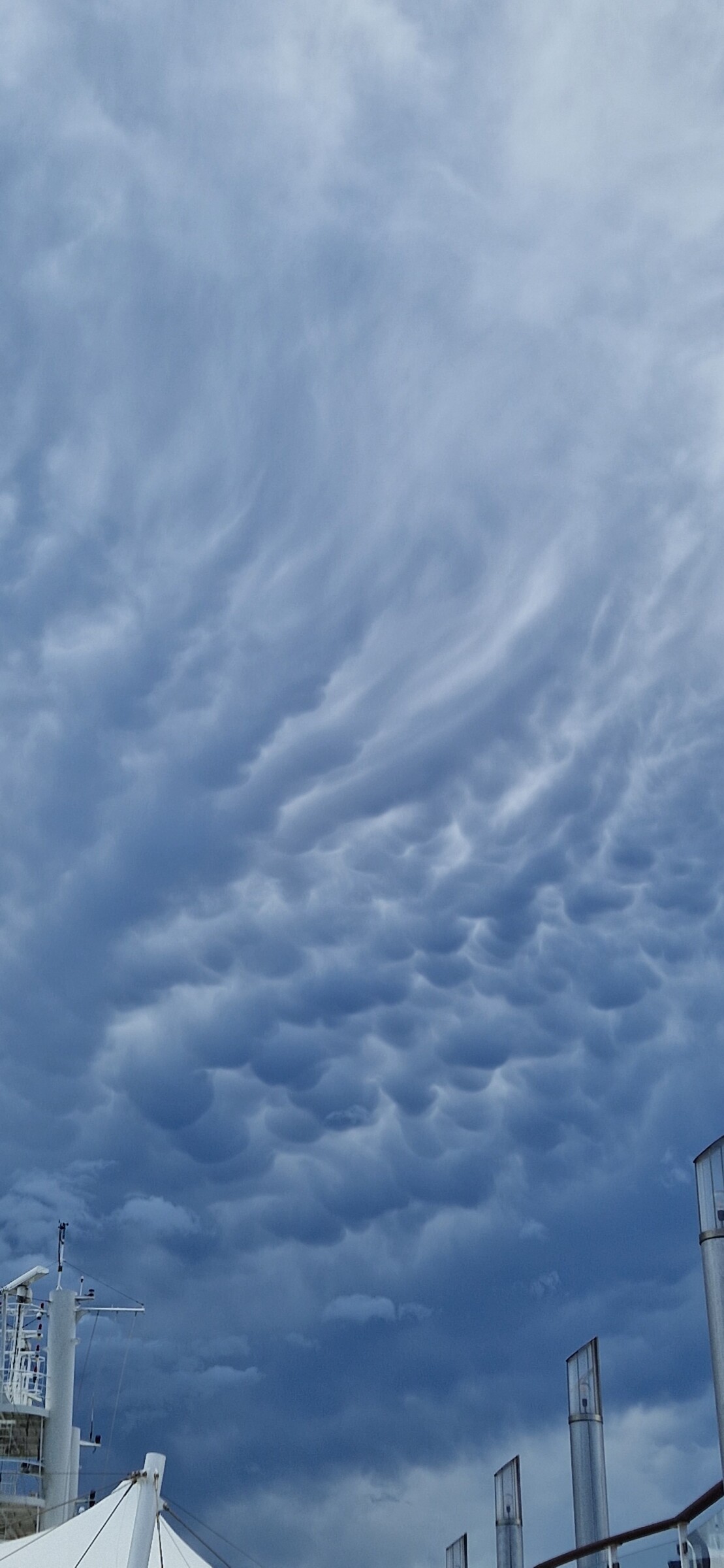 Afgelopen 2 weken waren wij in Zuid-Afrika voor een schitterende cruise langs de kust. Na een prachtige safari nabij Port Elizabeth sloeg het weer om en ontstond er een flinke onweersbui. Voor deze onweersbui verschenen er hele mooie mammatus wolken, precies boven ons cruiseschip. Ik zelf had het nog nooit zo mooi gezien...