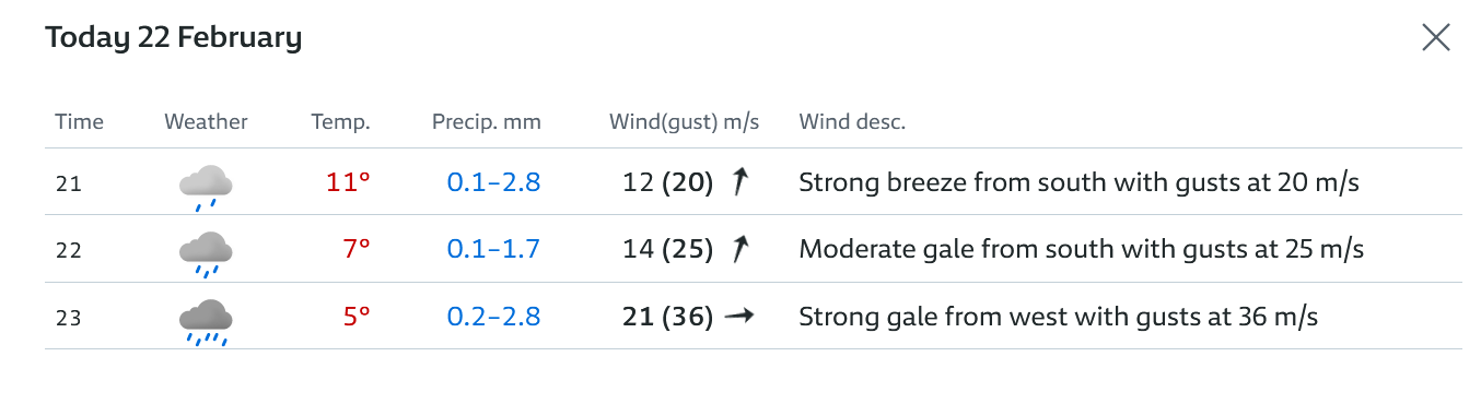 Yr.no komt met 129km/h op de proppen bij 9bft hier.