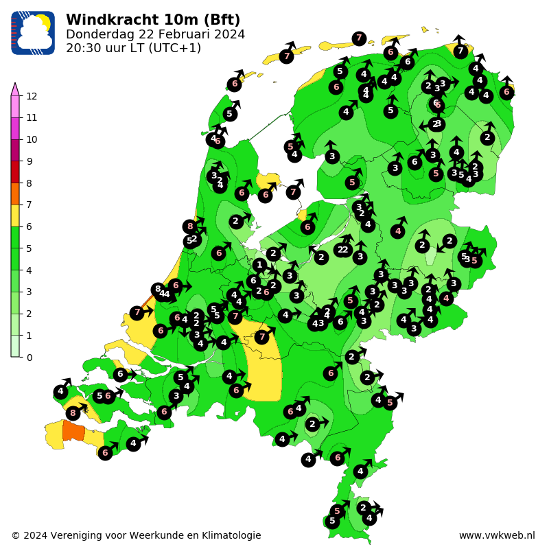 Wind zal plaatselijk inderdaad ongeveer 8 Bft bedragen nu.