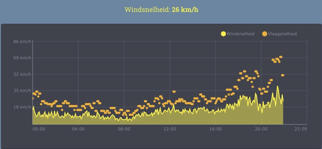 Vaassen 70km/u vlaag, wind 6 Bft ( 40km/u)