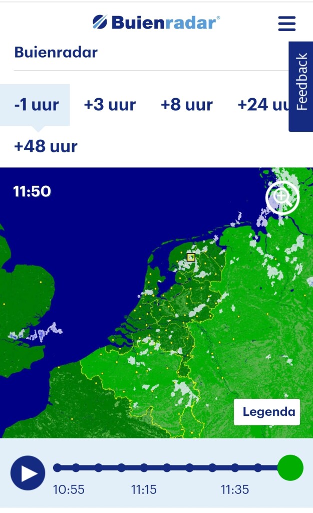 Verwachting voor vanmiddag biedt hoop maar voorlopig gaan we hier gebukt onder stug en hardnekkig buien lijntje wat maar niet wil opschuiven. 12 mm vandaag alweer. Af en toe grote druppels.