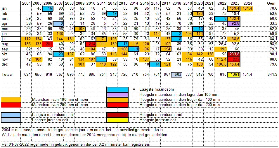 Kortom, in een kleine 5 maanden is er meer neerslag gevallen dan gemiddeld in een heel jaar.