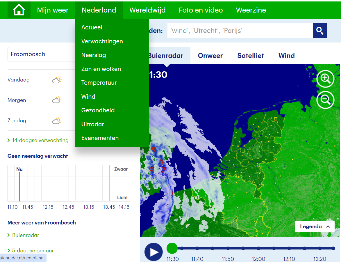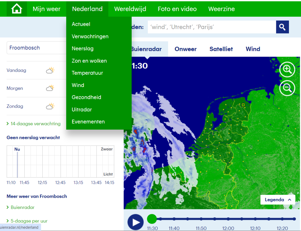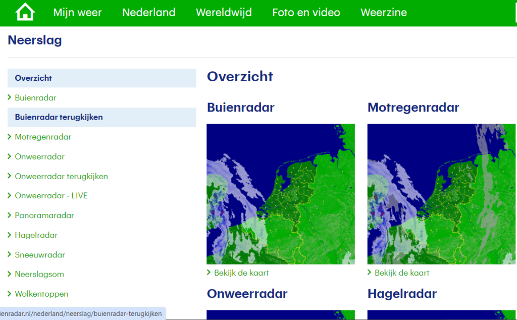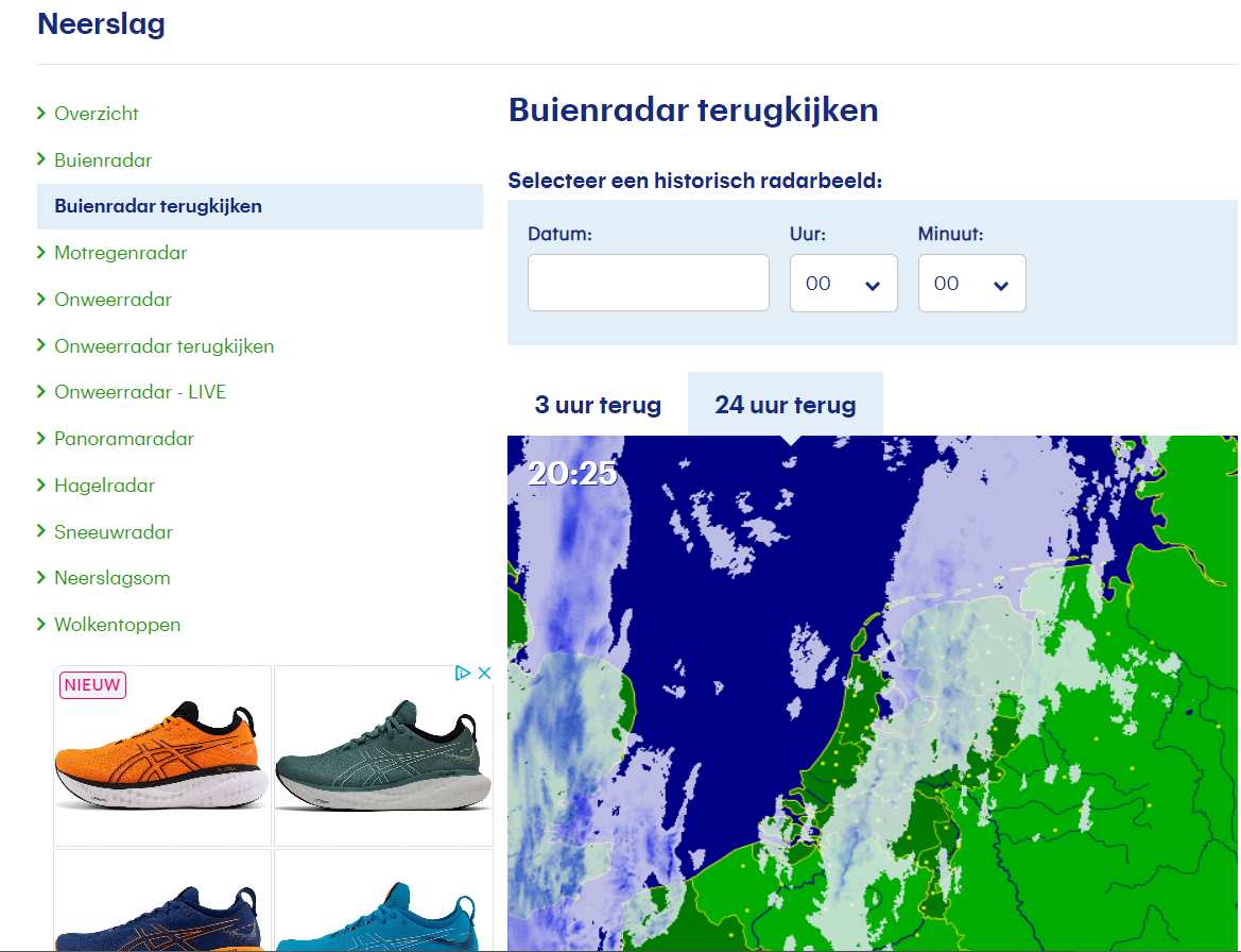 Daar op klikken en in het linkerrijtje zie je dan "buienradar terugkijken". Daar even op klikken.