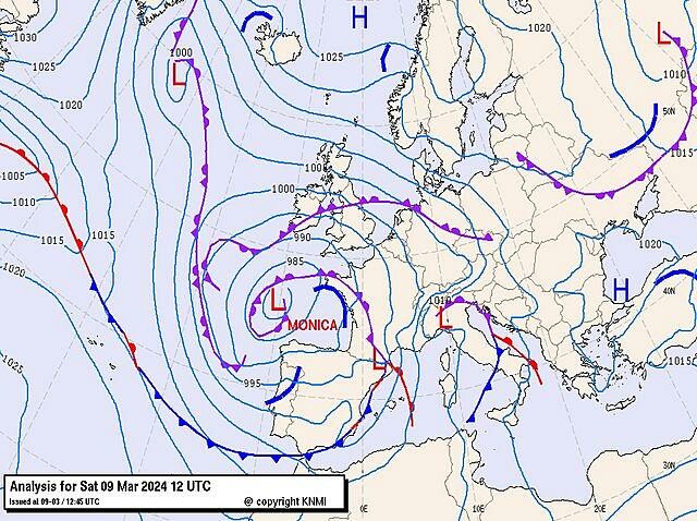 Edit: op de analyse van 12 uur wordt de situatie iets duidelijker: daarop waordt een apart kerntje ingetekend, met een slag in het front tot gevolg. Zie de derde afbeelding. Ondertussen laat het lopend gemiddelde van de 12-uursneerslag bij meteo60 al een 100+ zien (vierde afbeelding).