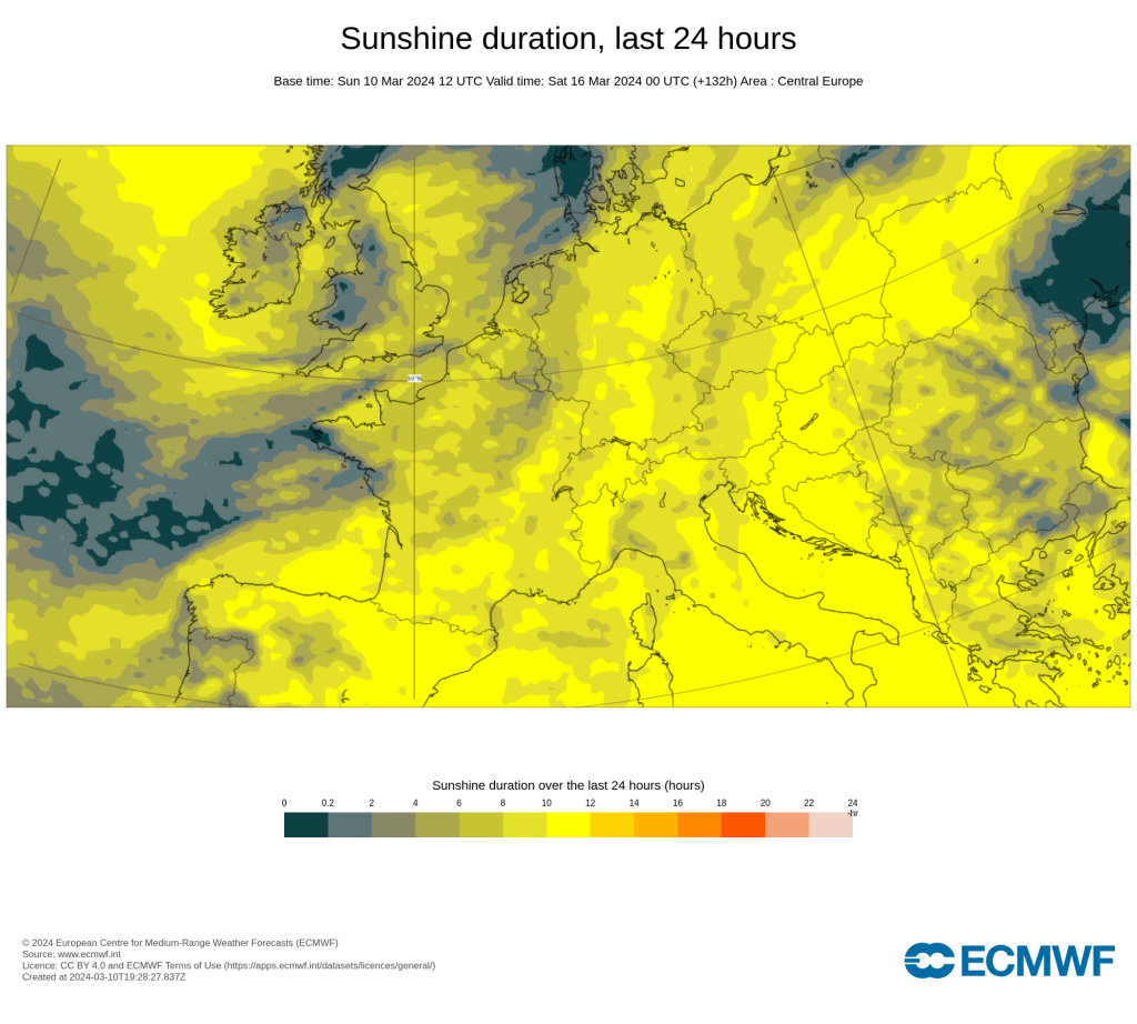 Donderdag en vrijdag ook redelijk wat zonuren in de verwachting.