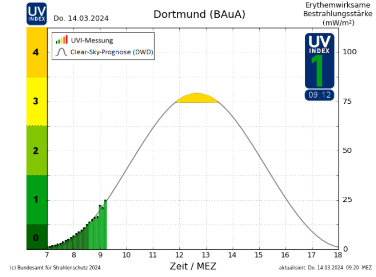 Vanmiddag gaan we enige tijd (tussen 12-14) iets boven de UV 3 pieken. Het RIVM houdt het op 2.9, maar meestal kloppen de Duitse berekeningen beter. In Zuid-Limburg en België zelfs tot 3.3 mogelijk vandaag. Dat betekent dat we voor het eerst dit jaar weer vitamine D kunnen aanmaken uit de zon. Voor mij altijd de officiële start van het seizoen zonder grote vermoeidheid, eczeem en andere winterkwalen.
