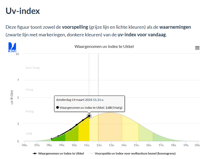 Gaat naar 3.3 (maar voorspelling is een lichte onderschatting vandaag, zo blijkt, misschien door de reflectie van de bewolking?)