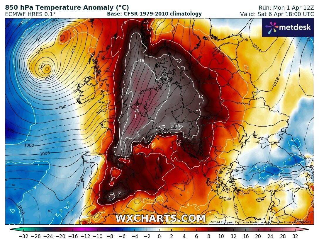 Zaterdag maar liefst 19 graden (!) op 850 hPa: