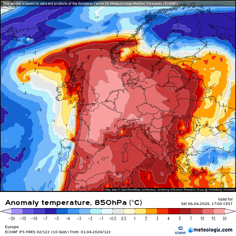 Zaterdag maar liefst 19 graden (!) op 850 hPa: