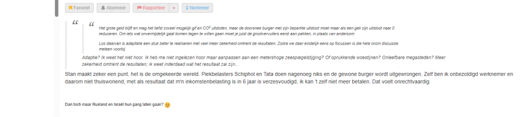 Vervolgens filosofeert hij verder... ik vind het geen gekke gedachtegang. Maar ik denk wel dat een oorlog, als je alles meeneemt, schadelijk is voor het klimaat.