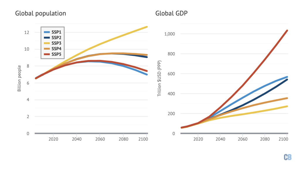 edit, zie bijvoorbeeld ook de gebruikte scenarios voor IPCC AR6 voor wat betreft de verhouding tussen uitstoot en bevolking.