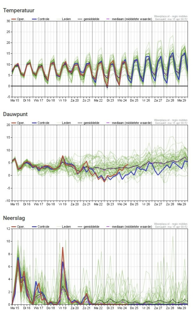 Voorlopig 10-11c. Daarmee te koud voor de tijd van het jaar. Richting mei opkrabbelend naar 15c.