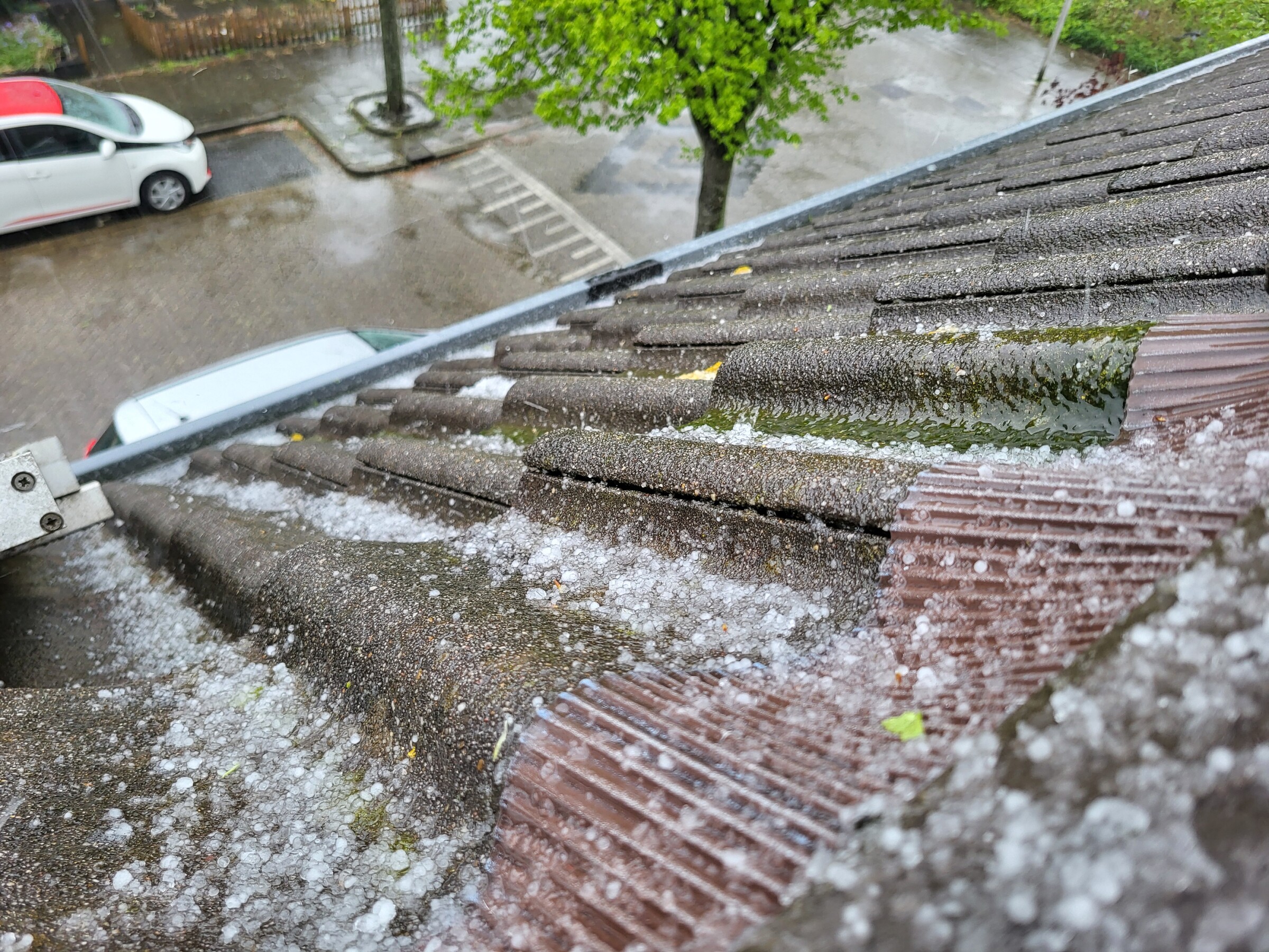 Ging echt even flink tekeer. Nu wat rustig maar zelden zo'n lange hagelbui gezien. Met recht een koufront; nu 7°C.