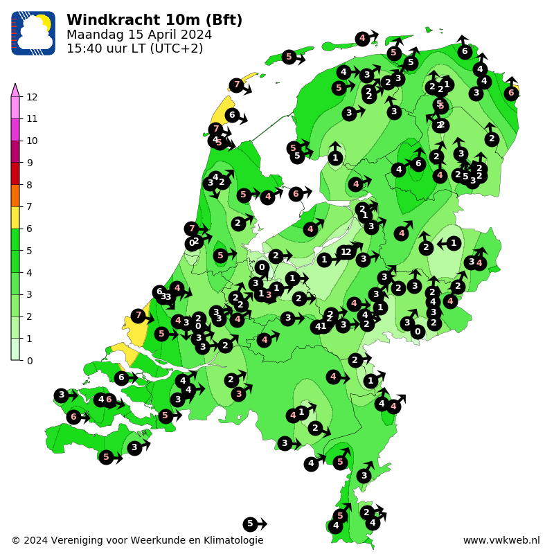 Rondje Wact? 7 bft & max. windstoot 77 km/h. Tact 4,5°C