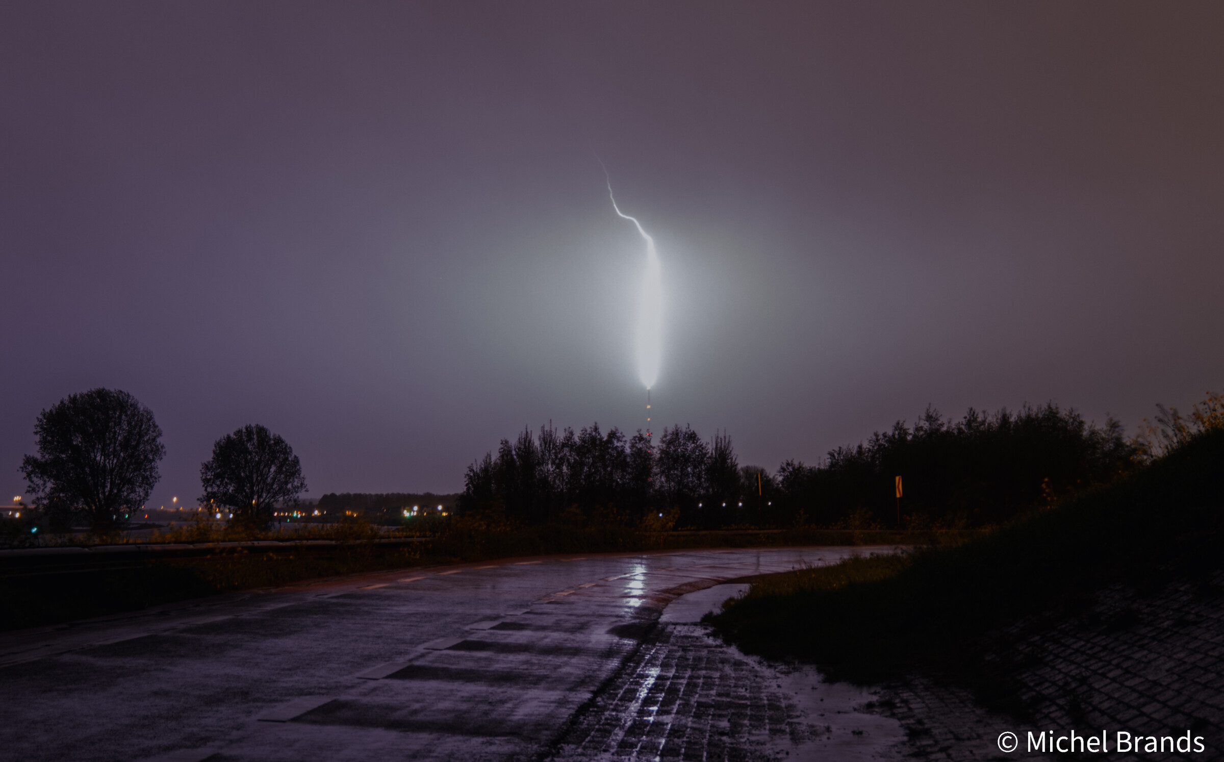 En tien minuten laten maakte ik nog een foto van een inslag in de Gerbrandy-toren in IJsselstein, die helaas was overbelicht (iets waar ik nu nog van baal