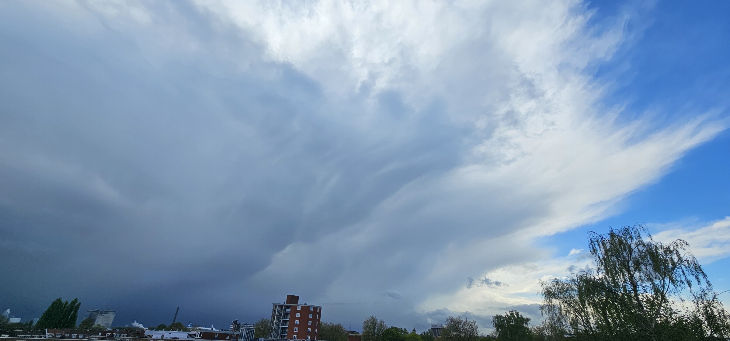 Dat was inderdaad een hele mooie bui ineens, hier viel de hagelintensiteit wel mee, maar ik zag wel dat de Zalmhaventoren 3 keer werd geraakt, waarvan een met opwaartse vertakkingen, mogelijk ook eentje op de Euromast