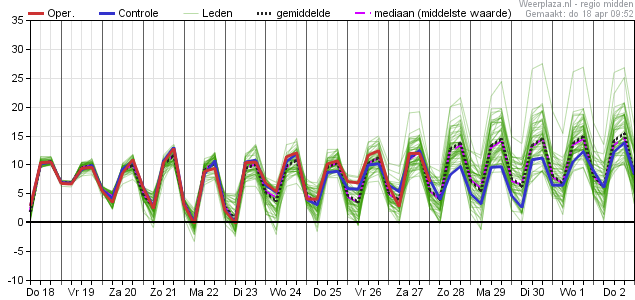 Besprekingen met Sebastiaan hoef je eigenlijk niet te openen, want meestal weet je dan wel hoe laat het is. Wat een draken van kaarten. Met een 'geniale' timing, precies wanneer de lente op stoom zou moeten komen. Kostbare dagen gaan alweer verloren vanuit het perspectief van de warmteliefhebber. En het einde is nog lang niet in zicht. Dit soort settings zijn bijzonder hardnekkig. Wat je ziet gebeuren is dat ensembles keer op keer diepere dalen krijgen en dat de dalen steeds mettertijd langer worden. Warmere leden worden keer op keer weggestreept. Dat kan zo doorgaan tot juni is al rijkelijk bewezen de afgelopen jaren. Ik zie niet in waarom het nu anders zou moeten lopen. Lente 2024 wordt geen vette wat mooiweer betreft (zie ook jongste pluim en bijvoorbeeld de Control die de gehele periode het niet meer goed laat komen). Gemiddeld zal het er natuurlijk weer zeeeeeer zacht uitzien met de recordzachte maart in de pocket. Maar je koopt er weinig voor, want voor het gevoel zijn er nog maar een handvol echt lekkere dagen geweest.