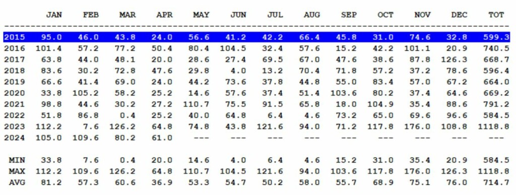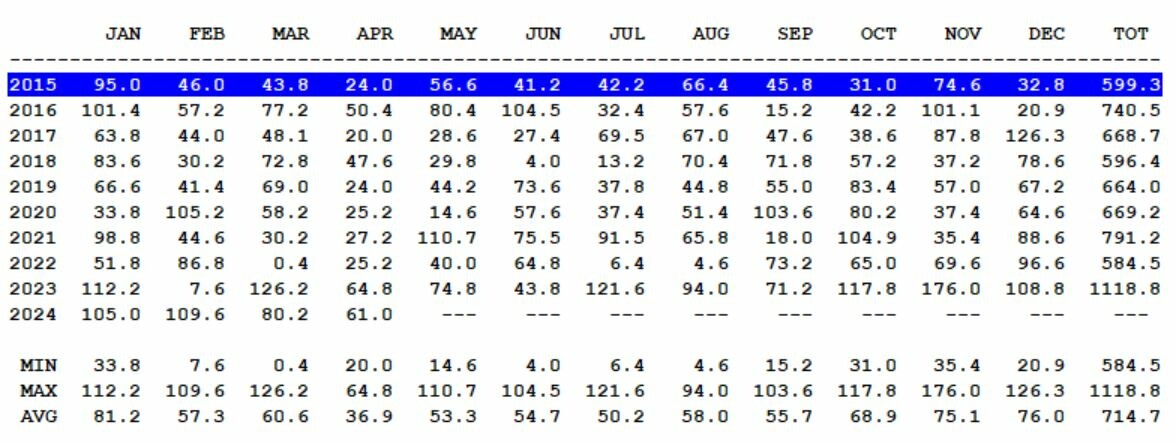 2024 zit nu aan 355,8 mm alweer.