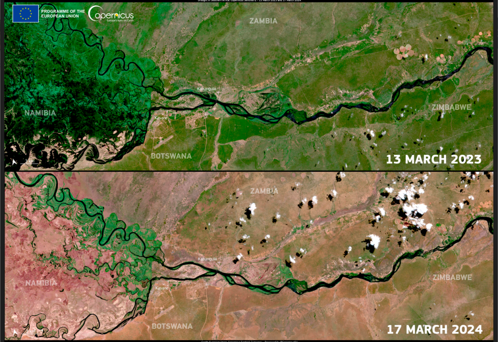Van oktober 2023 tot maart 2024 zijn de stijgende temperaturen en het ernstige gebrek aan neerslag geïntensiveerd en geleidelijk uitgebreid in Angola, Zambia, Zimbabwe en Namibië, evenals in het grootste deel van het Zambezi-bekken en het zuiden van Madagaskar. Recordhoge temperaturen die teruggaan tot 1960 hebben de situatie verergerd. De Zambezi-rivier stroomt dit seizoen op zeer lage niveaus, wat de ecosystemen ernstig verstoort.