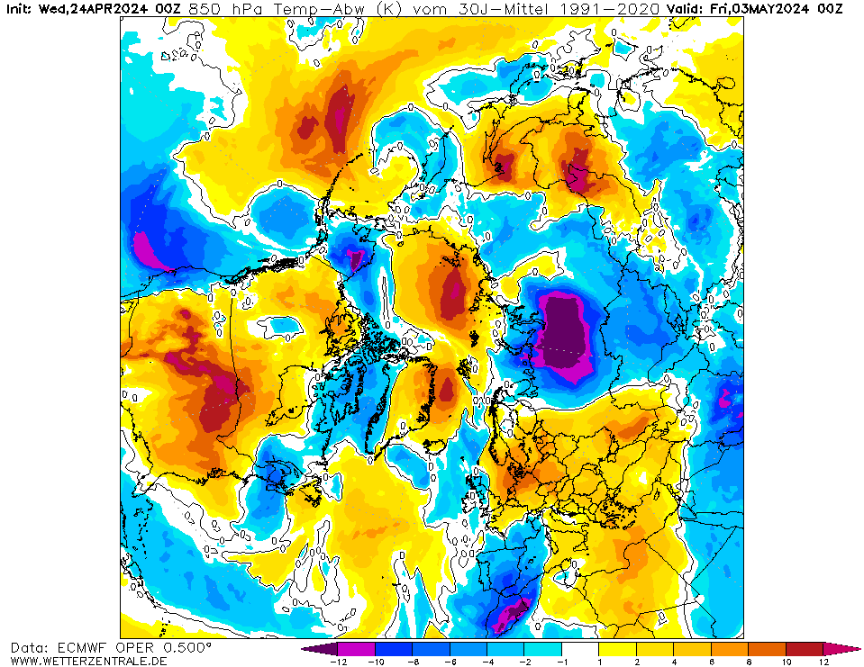 Blikvanger m.i. is de kou west-Siberië. Forse afwijkingen op termijn. Edit. Ook koelere weer in het westen van noordelijk Afrika valt me op.