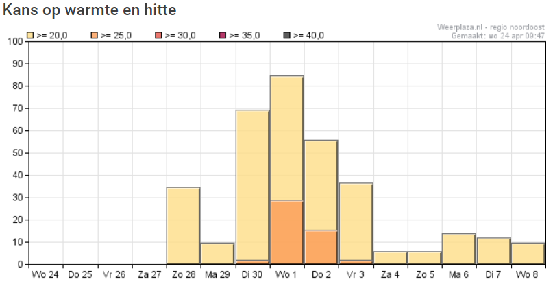 Rond 35 mm de komende 15 dagen. Niet verkeerd