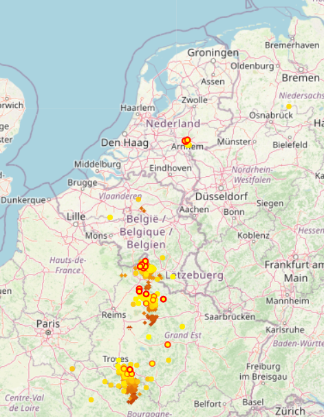 Volgens mij zat deze bui trouwens eventjes in de blinde vlek van de weerradar bij Herwijnen, vandaar dat er eerst niets te zien was op het radarbeeld.