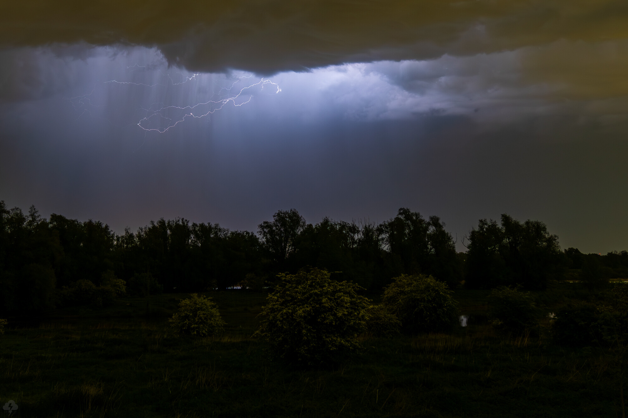 Ook hier bliksem en donders in het oosten. Het is (nog) droog.
