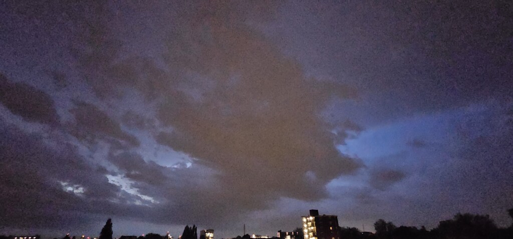 Yup, een schamper en wat voor een, vooral veel hoogte onweer en ook enkele rake cg inslagen met oorverdovende klappen en ook zware hagel waarbij het even wittig is geworden en van 2 mm naar 14 mm in 10 minuten tijd