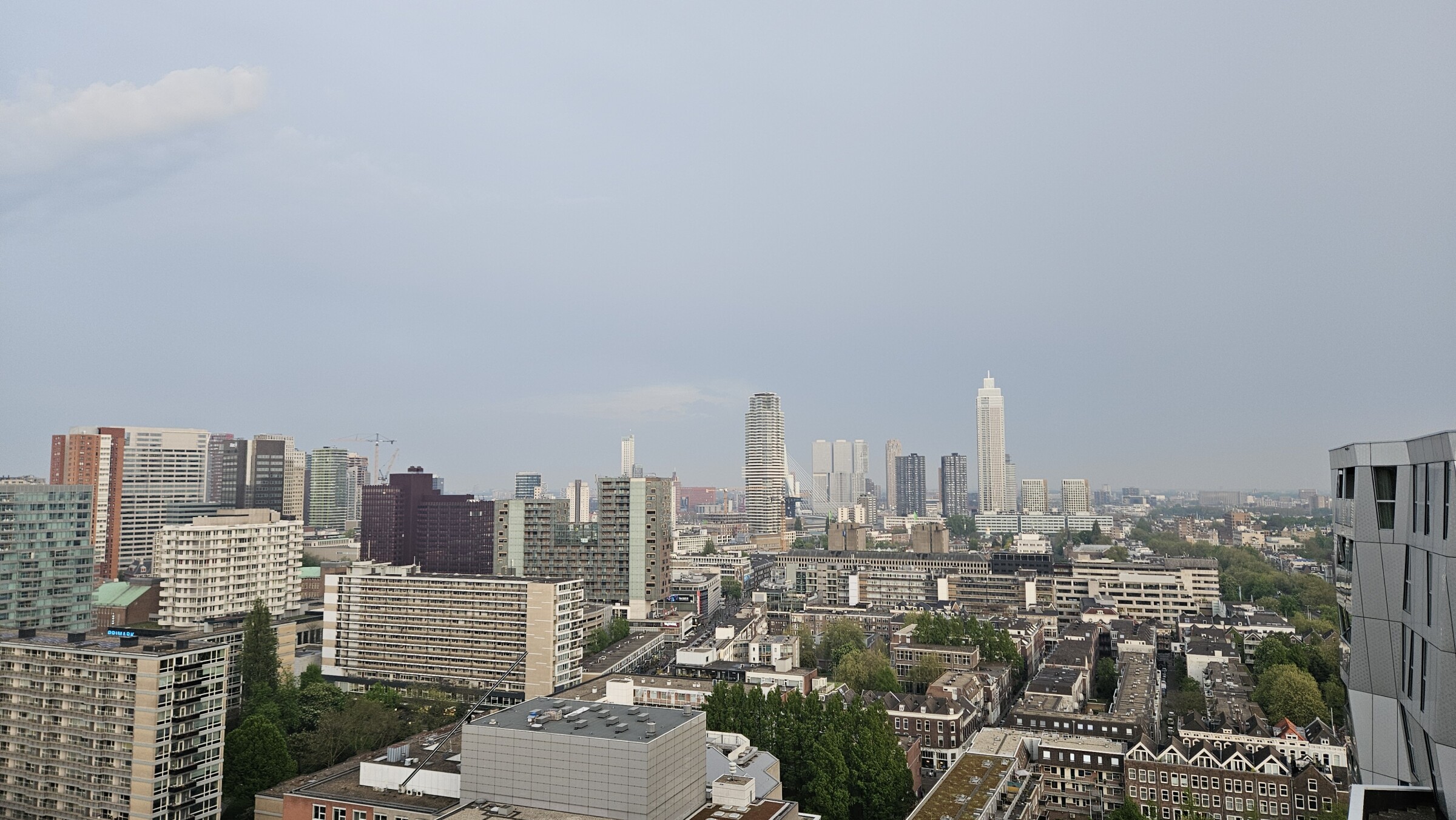 Beetje donker in het zuiden maar geen structuur van de bui te zien, zo ver weg is die.