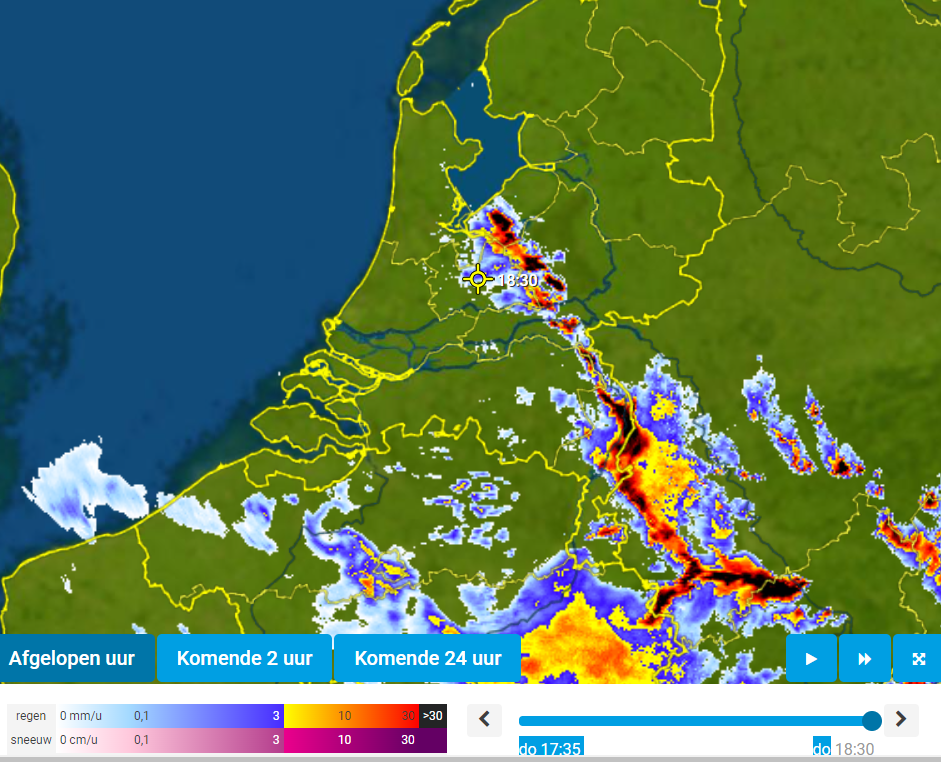 De buien komen uit het noordoosten. En hier zit toch iets meer dynamiek in dan de pulse buien.