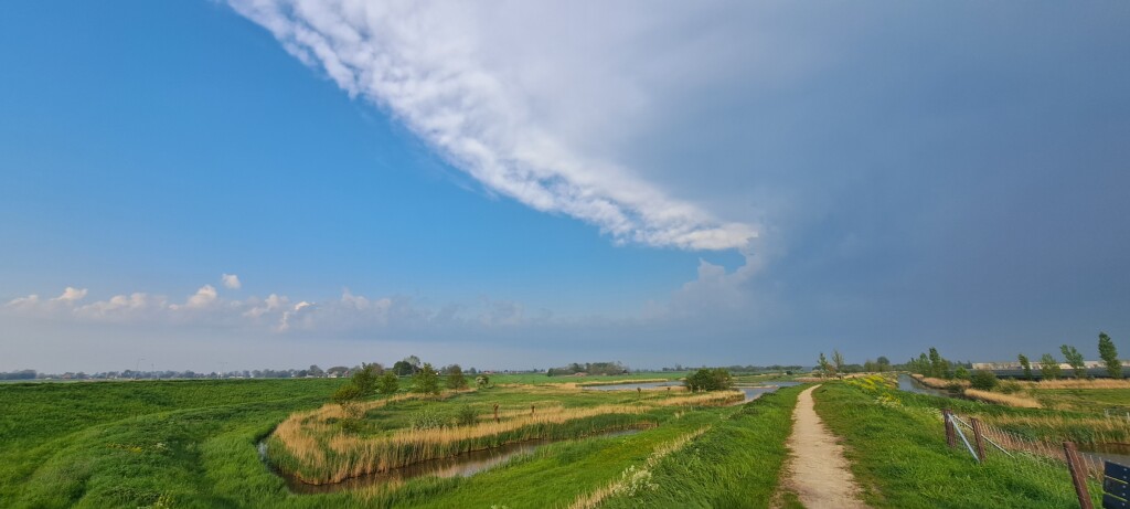 Hier een grens geval. De bui die oprukt naar het noorden. Zo te zien haalt hij Kwadijk net niet en trekt ten zuiden langs.