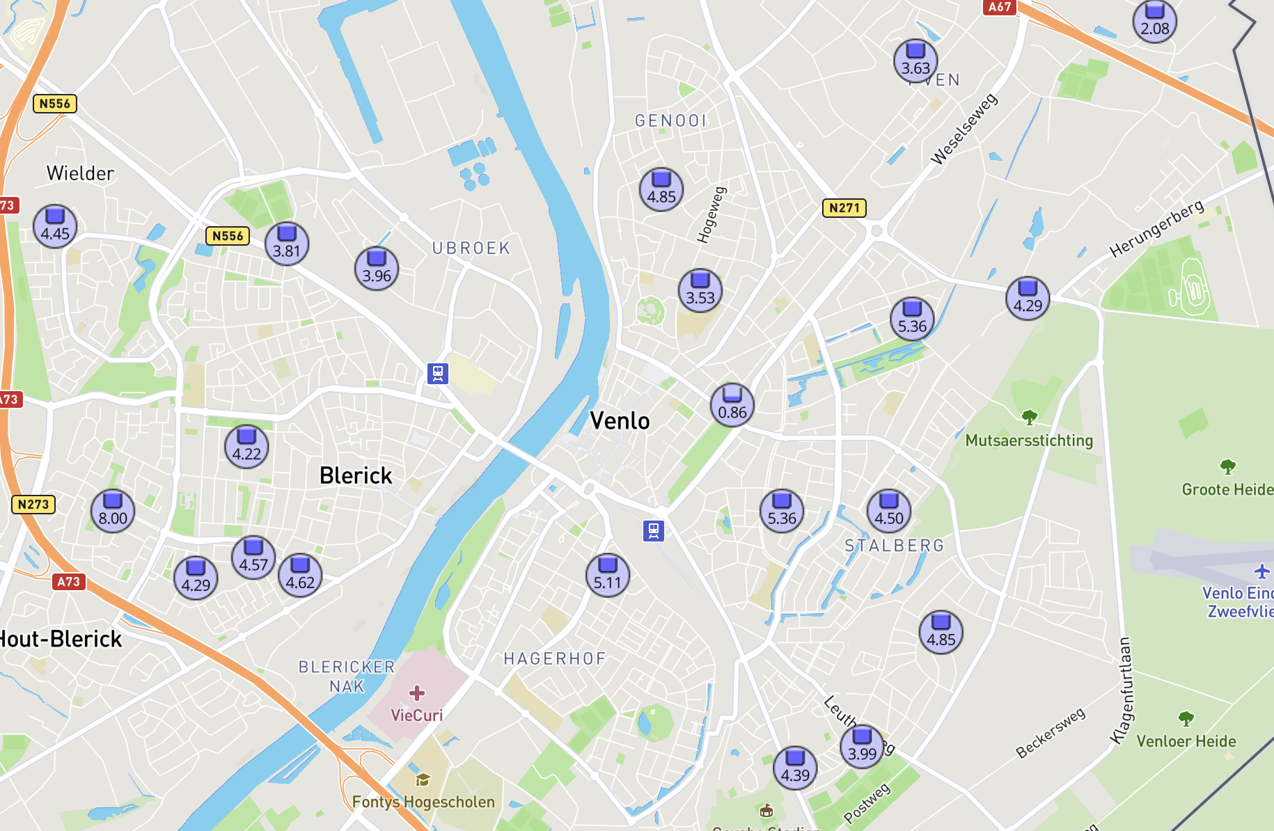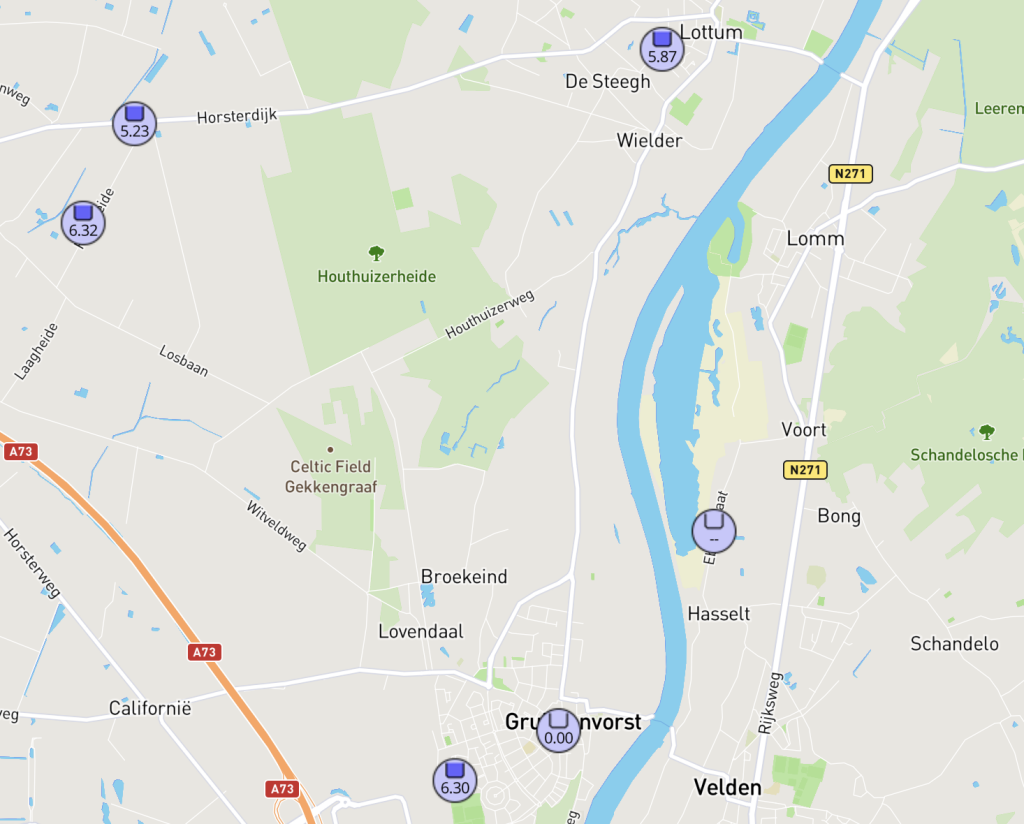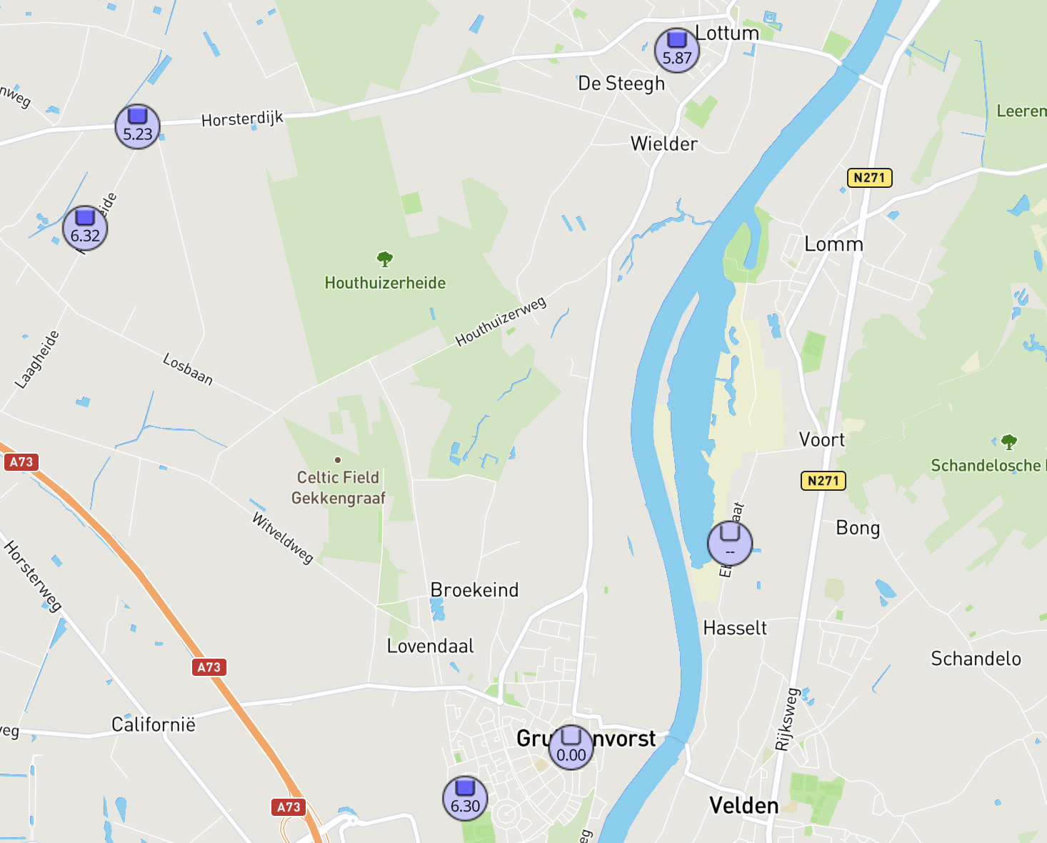 Meeste weerstations rondom Venlo/Arcen 40-63mm neerslag