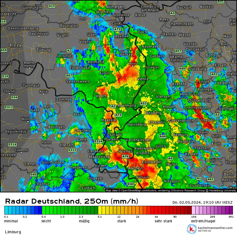 Nu zal het nog een tijdje gaan doorregenen, matige intensiteit. Onweer verwacht ik niet meer. Enkel de ontladingen van de gepasseerde onweerskern zijn geregeld fel zichtbaar in het zuidwesten.