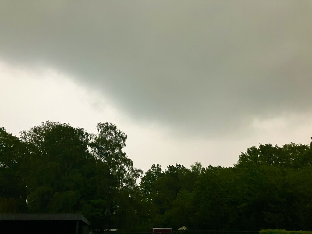 Iets na 19u zag ik de arcus verschijnen in het noordoosten. Eerst een zeer donkere lucht waarna stilaan een lichtere kleur zichtbaar werd. Een beetje groenig, later iets meer geel/beige tinten. Geregeld weerlicht zichtbaar.