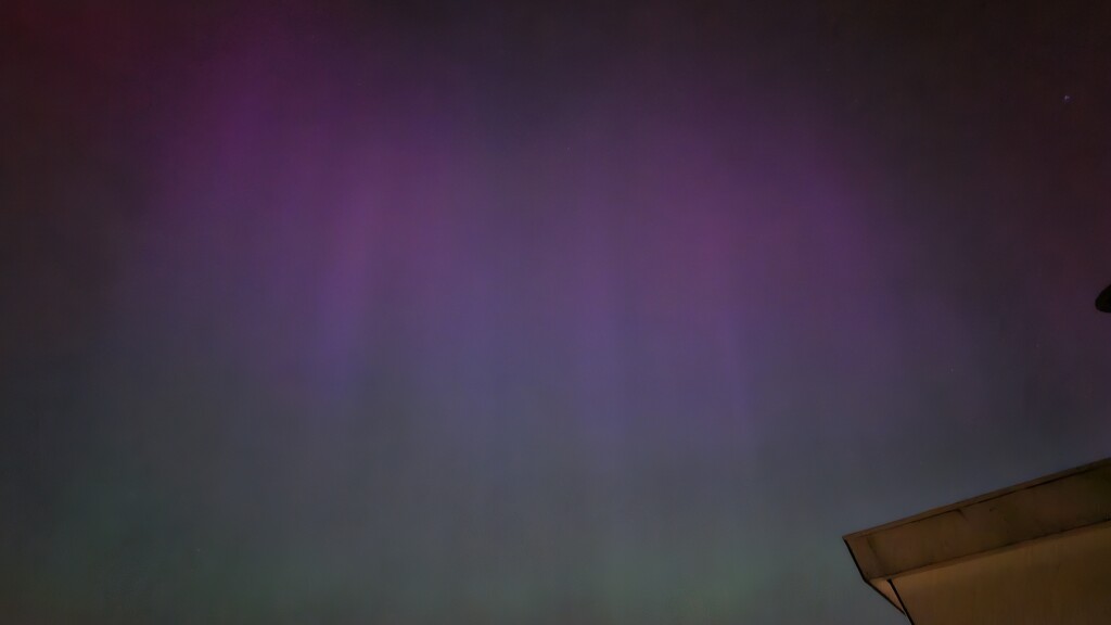 Ik zag hooguit wat groenig verticaal gestraald noorderlicht met het blote oog. Rood/paarse gestraald noorderlicht heb ik niet eens met het blote oog gezien. Denk dat lichtvervuiling overigens ook wel een rol speelt. Maar met 5 seconde belichting zag je pas echt de kleuren zoals op deze onbewerkte foto te zien is.