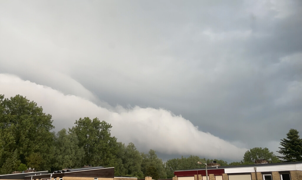 Voorafgegaan door een rolwolk en daarna regen en hagel zoals ik dat hier volgens mij nog nooit heb meegemaakt! Ook enorme onweersklappen en flitsen boven m'n hoofd!