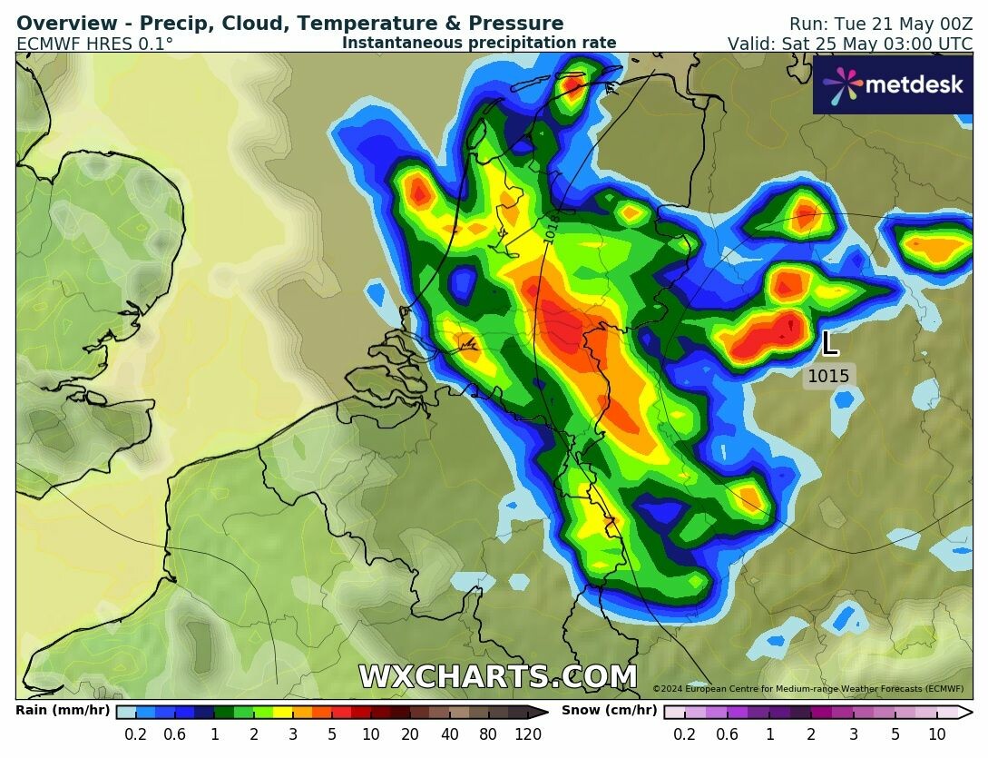 ECMWF (00z): Nacht van vrijdag op zaterdag weer een 'waterbom'?