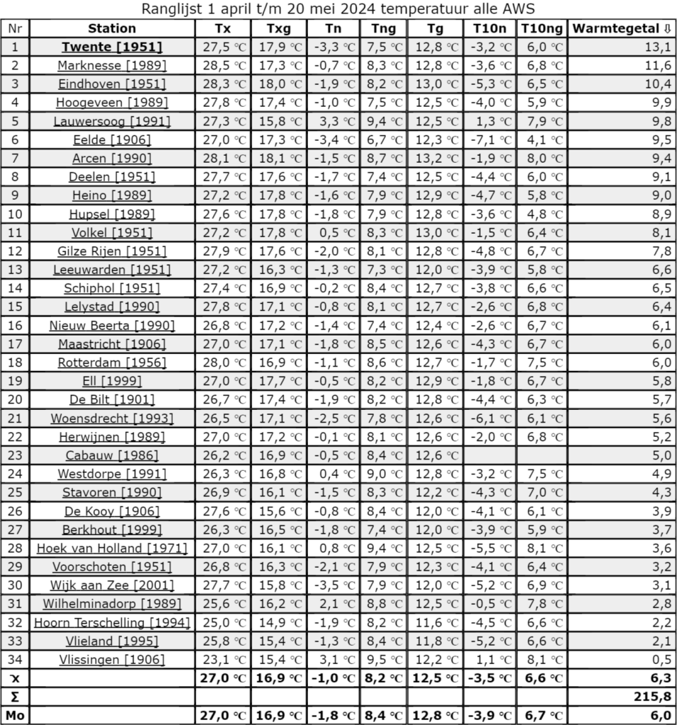 Ook hier zullen we op meer warme dagen in mei eindigen dan gemiddeld..