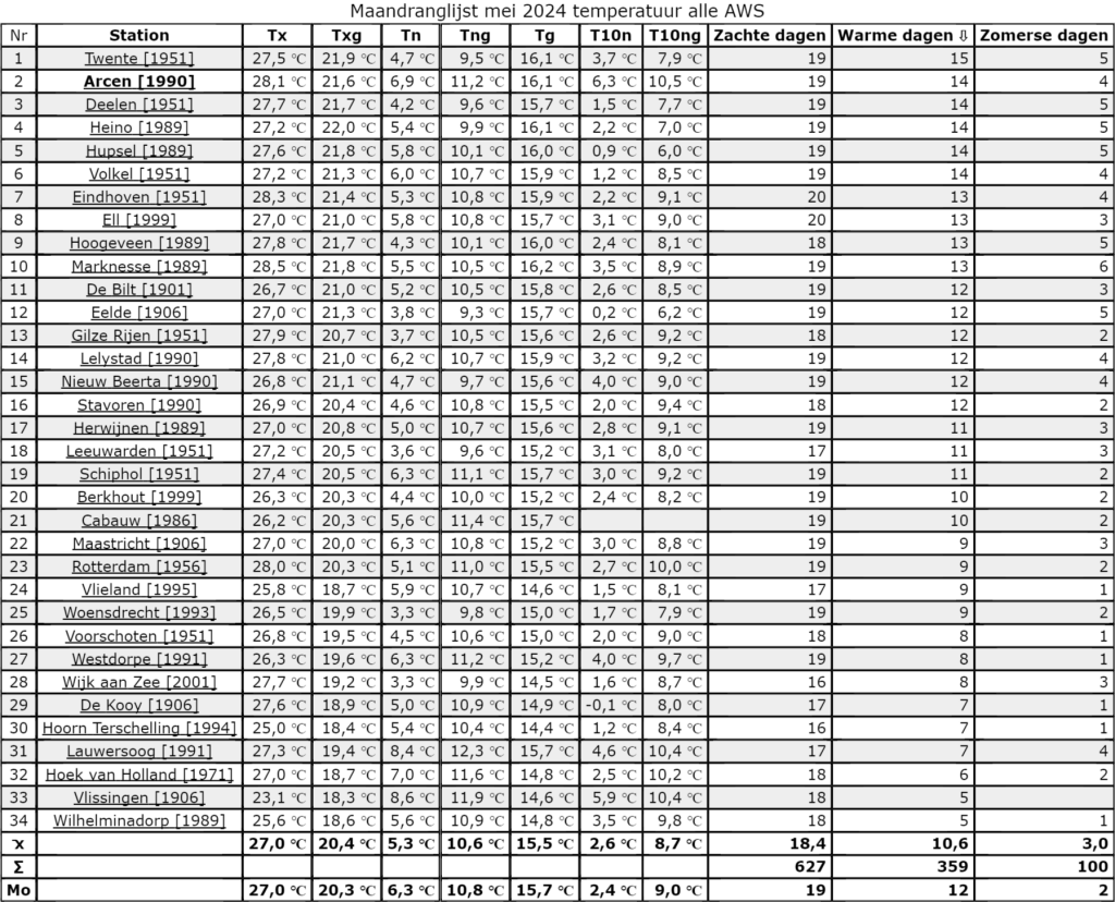 Ook hier zullen we op meer warme dagen in mei eindigen dan gemiddeld..