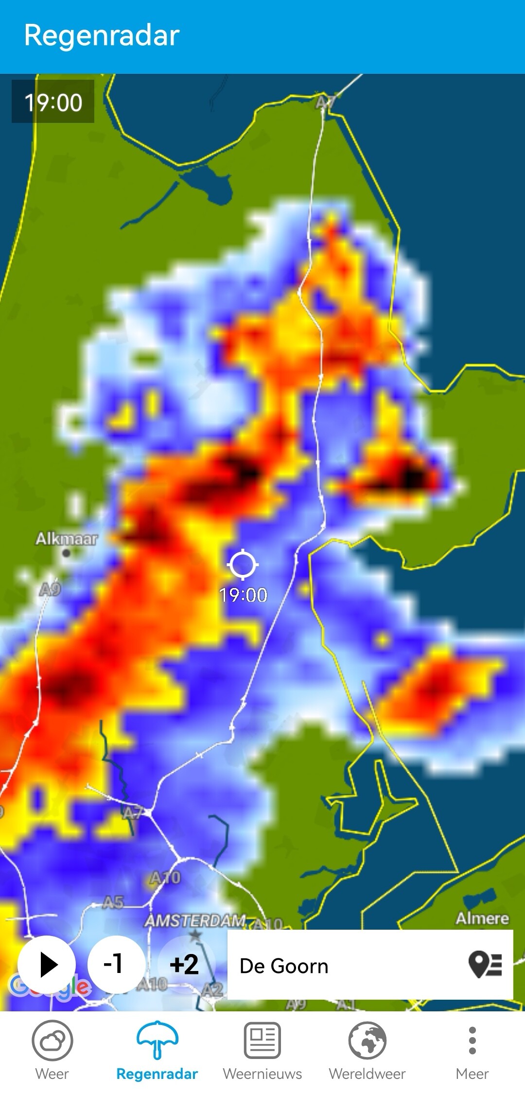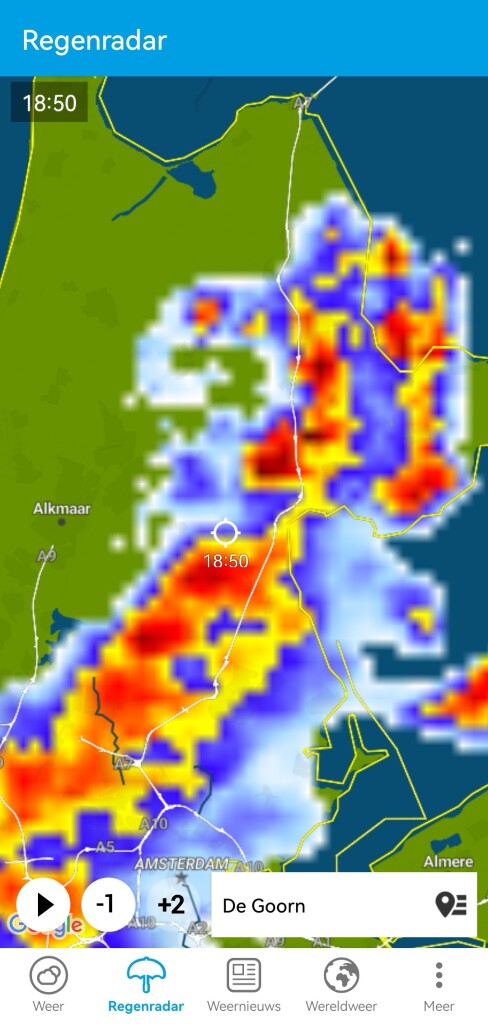 Er ontstaat een bui nabij Sneek, vele donders, echter maar 0.1 mm.
