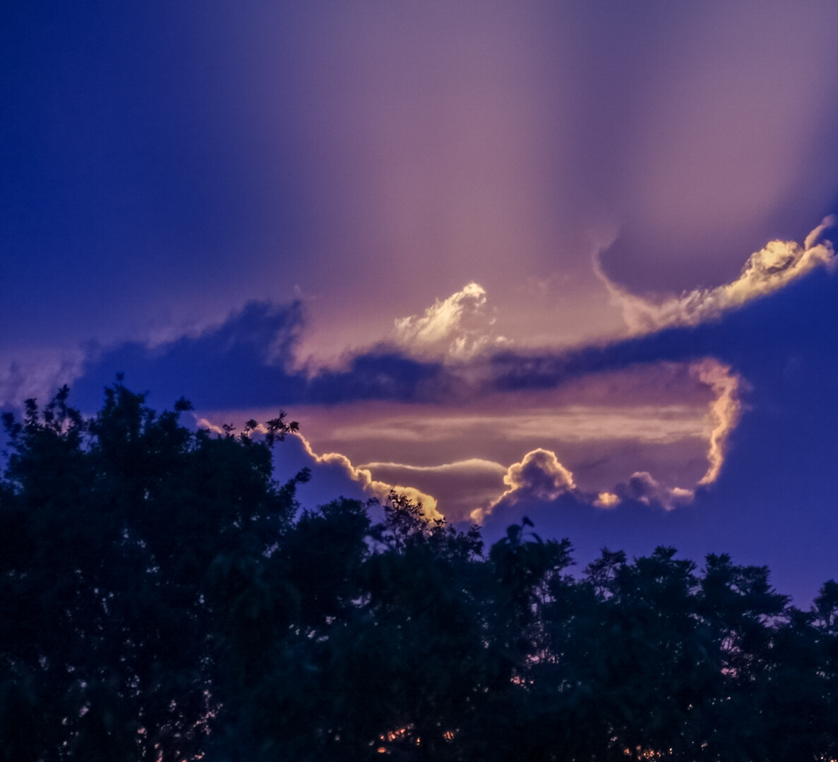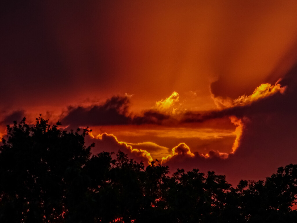 Bijgaand twee foto’s van de zonsondergang van twee dagen terug, ik heb sterk ingezoomd en de camera instelling veranderd.