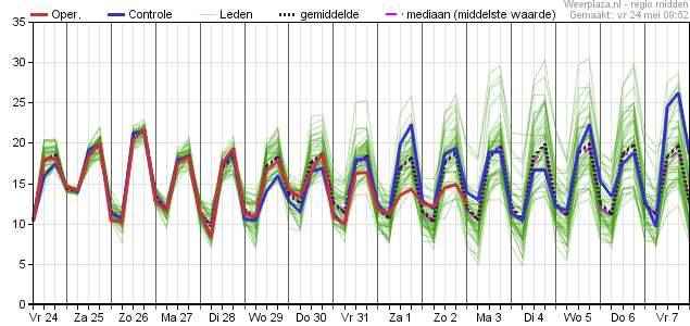 Gemiddelde zakt terug naar ca. 17-18 graden.