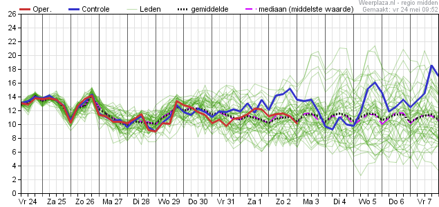 Dauwpunttemperatuur blijft tussen 10 en 12 graden zwabberen na dit weekend.