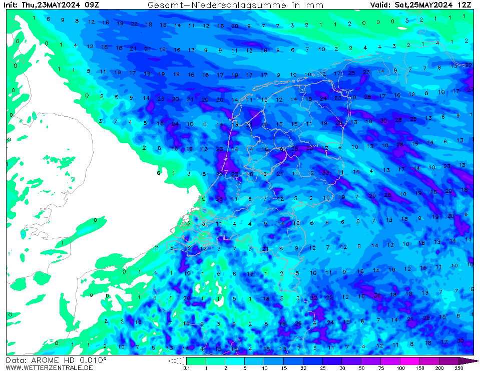 Ik zie op WeatherUnderground nu al weerstations die op 10 - 15 mm zitten in Zuid-Limburg en het is nog lang niet voorbij.