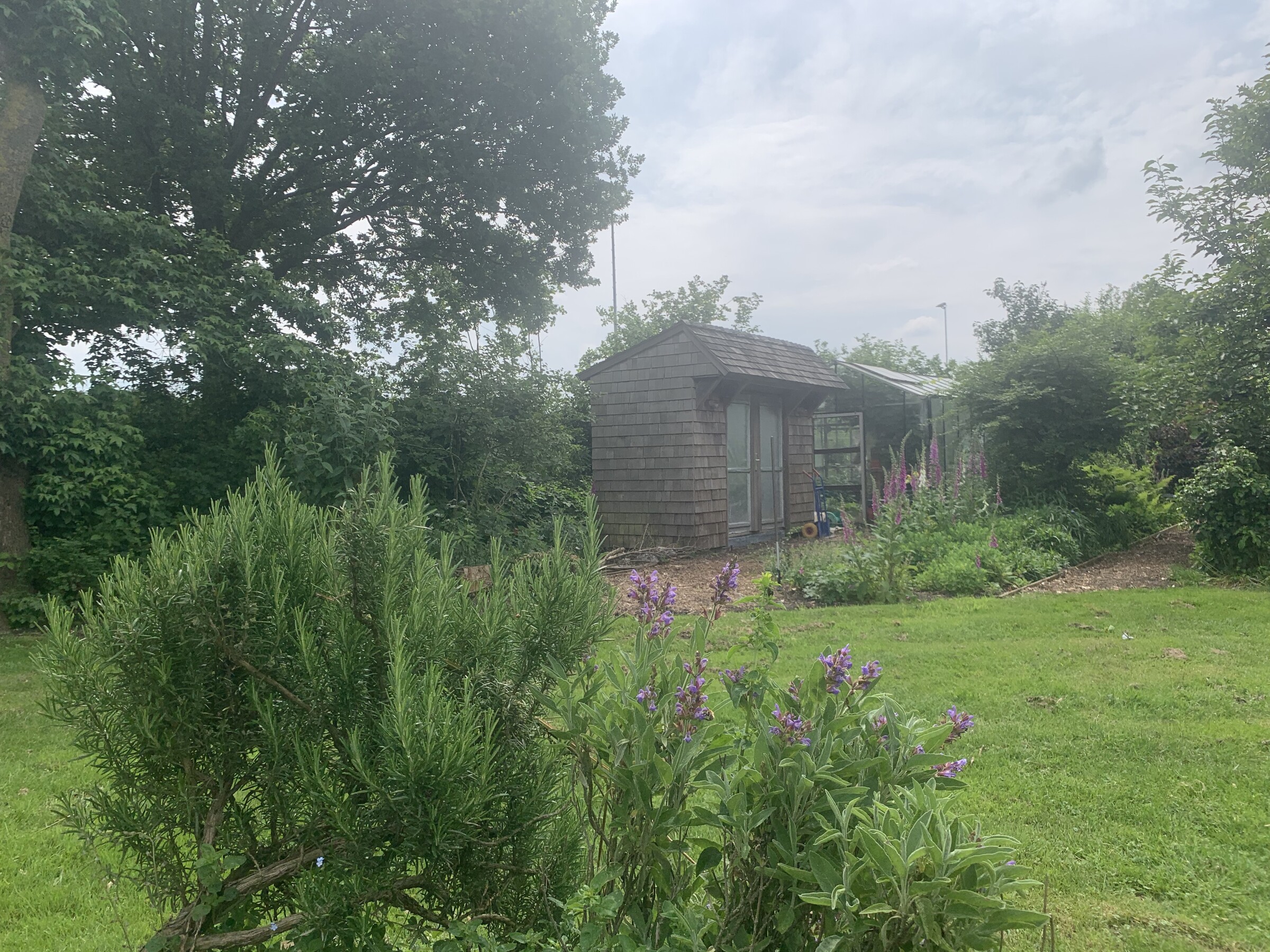 Oostenwind en lekker warm in de tuin met weliswaar een versluierde zon; voelt broeierig zomers aan.