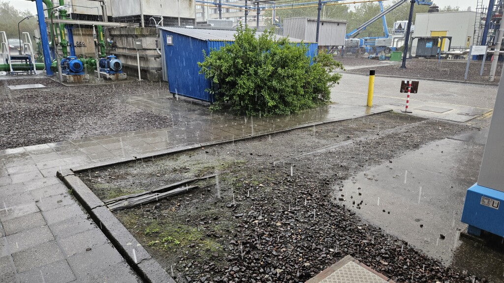 Ja in Rozenburg ook een dreun. 2e bui, zware regen, donkere lucht