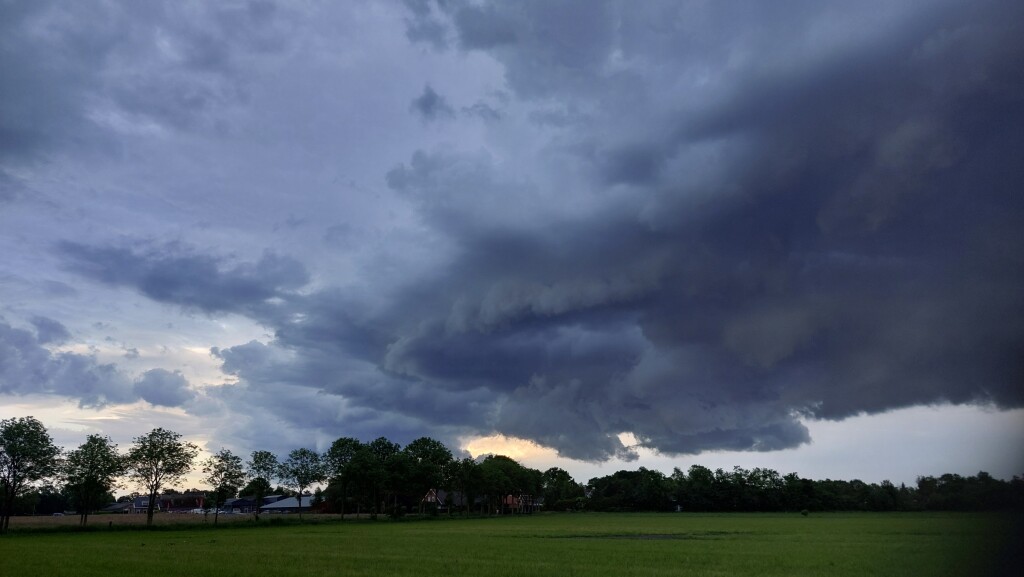 Spectaculaire shelfcloud, in jaren niet zo mooi gezien: