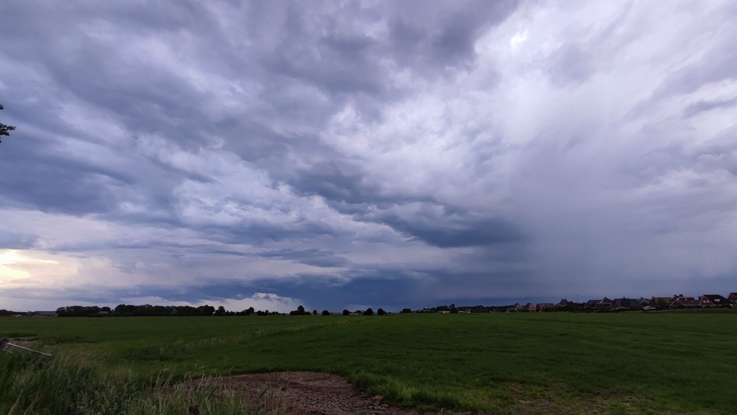 Spectaculaire shelfcloud, in jaren niet zo mooi gezien: