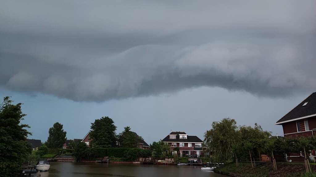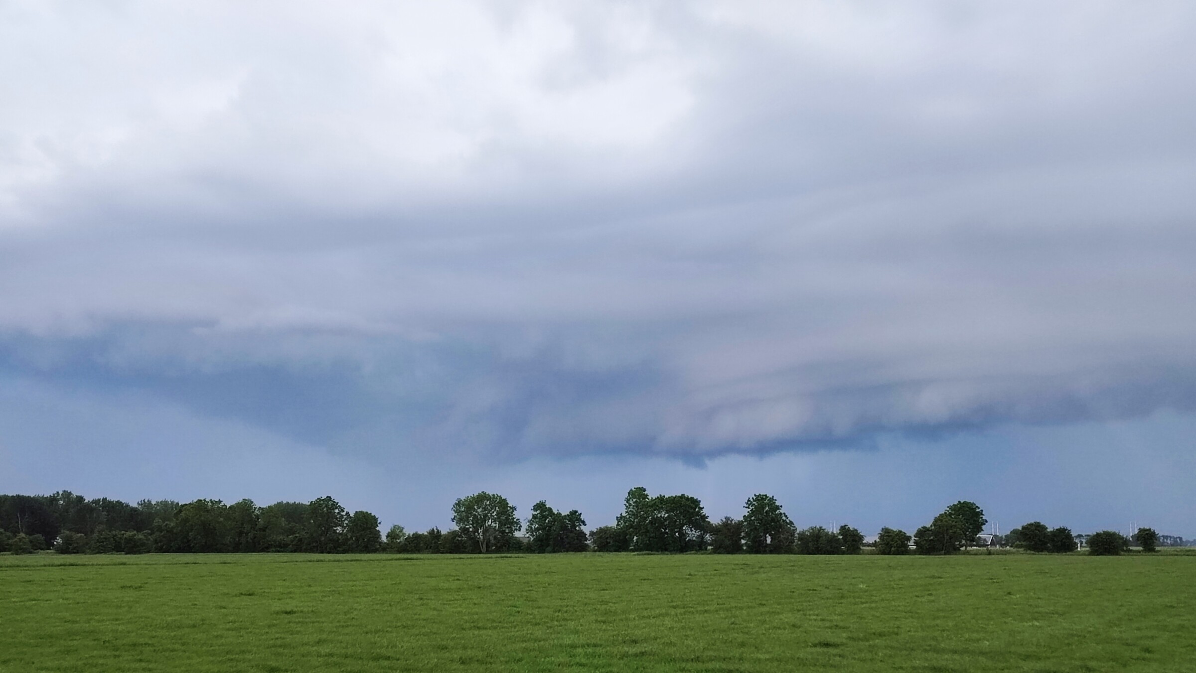 Spectaculaire shelfcloud, in jaren niet zo mooi gezien: