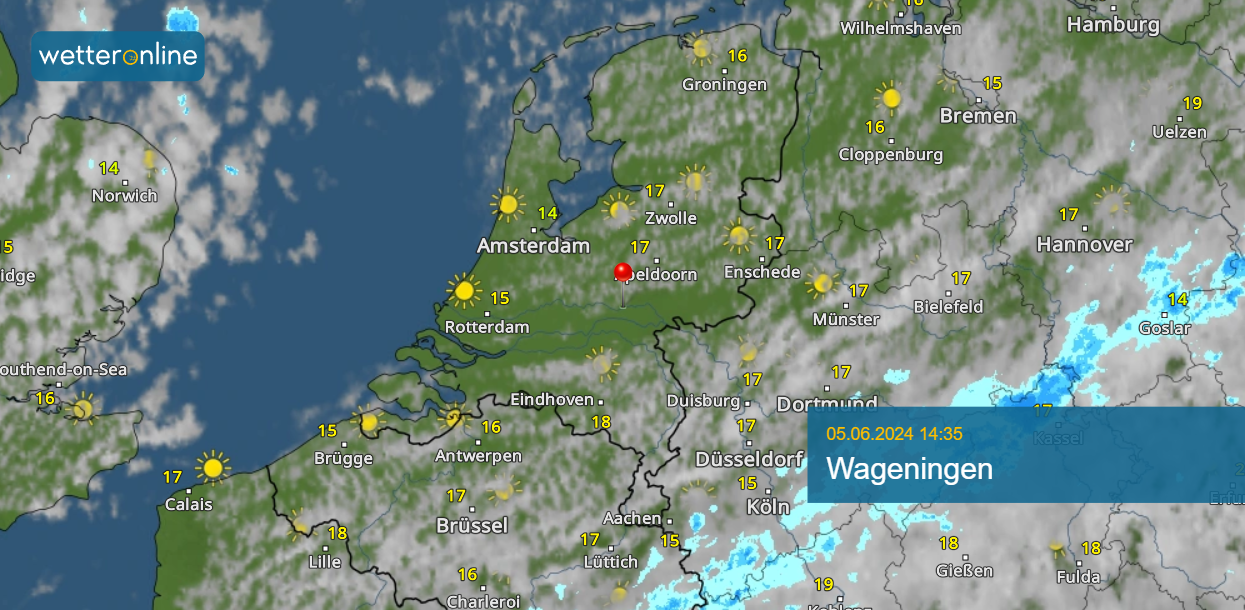Ook in Wageningen prachtig weer met flinke opklaringen en ondanks de relatief lage temperatuur is het buiten prima vertoeven.